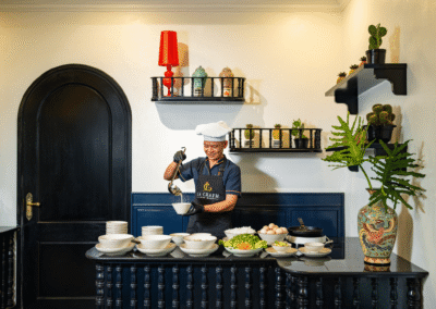 La Verdure takes inspiration from a type of yeast used in the ceramics of the Vietnamese nation as well as Asia since ancient times. We serve both traditional and international flavours. A free full breakfast is included for guests. Lunch and dinner are served with local cuisine where we introduce traditional rural dishes and regional specialties of Vietnam. Healthy eating is our passion. We insist on using fresh and organic ingredients for each dish. Our chef gathers the best produce from the region ensuring best flavours without artificial ingredients.Customers can enjoy their dining experience either in our beautiful restaurant or the tranquillity of pool, gardens or balcony.